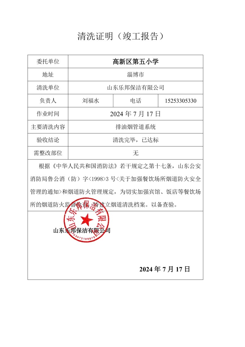 高新區(qū)第五小學(xué)清洗報(bào)告24.7.17