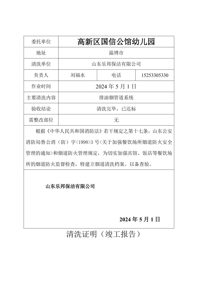 高新區(qū)國信公館幼兒園清洗報(bào)告24.5.1