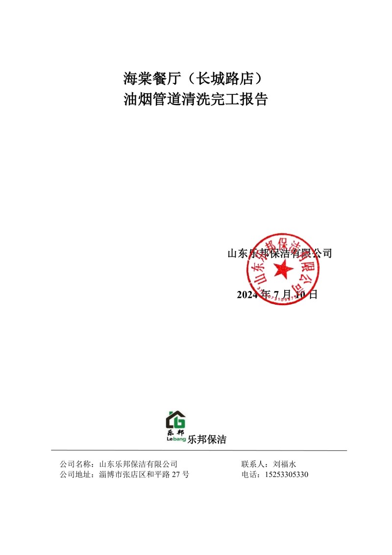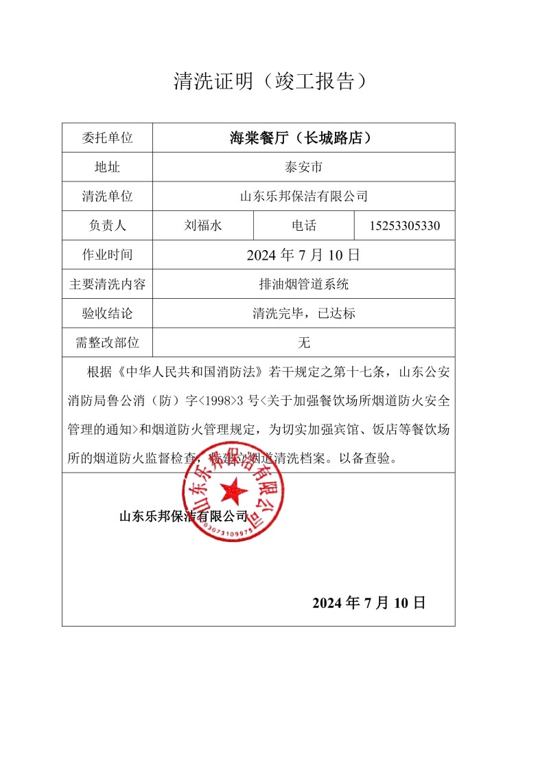 海棠餐廳(長(zhǎng)城路店)清洗報(bào)告24.7.10