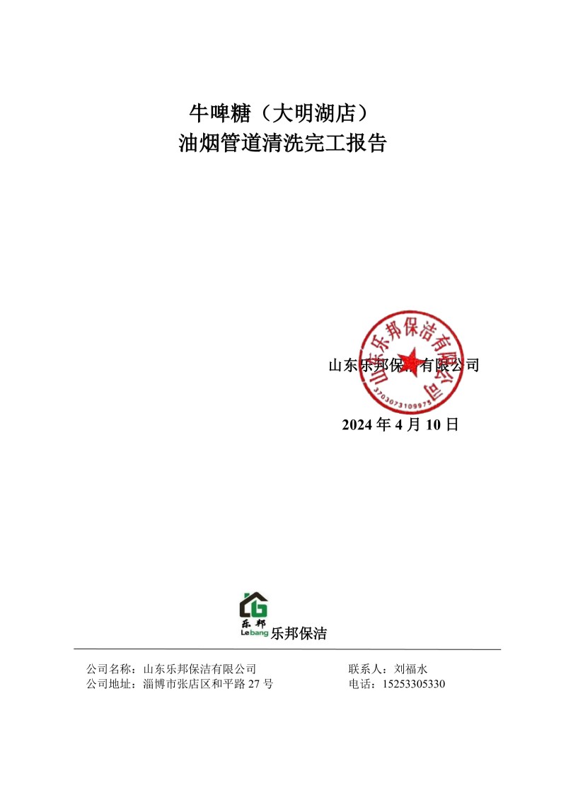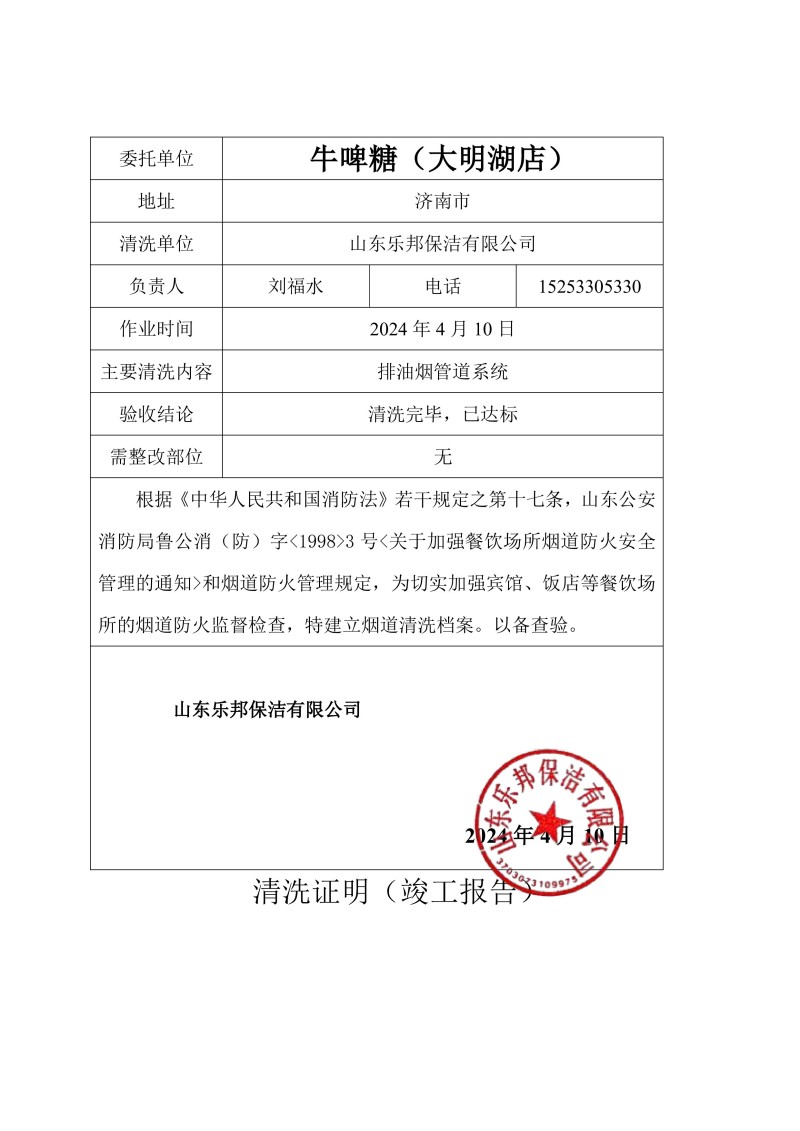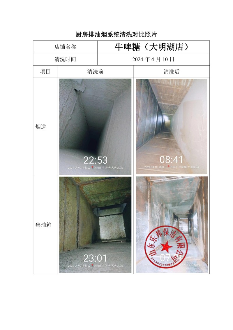 牛啤糖(大明湖店)清洗報(bào)告24.4.12