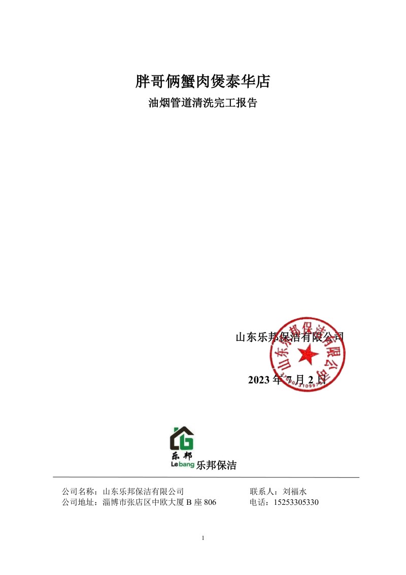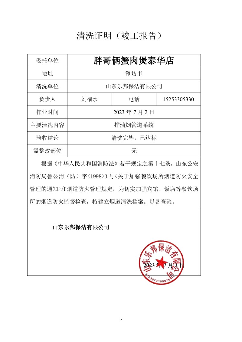 胖哥倆蟹肉煲(泰華店)清洗報告23.7.2