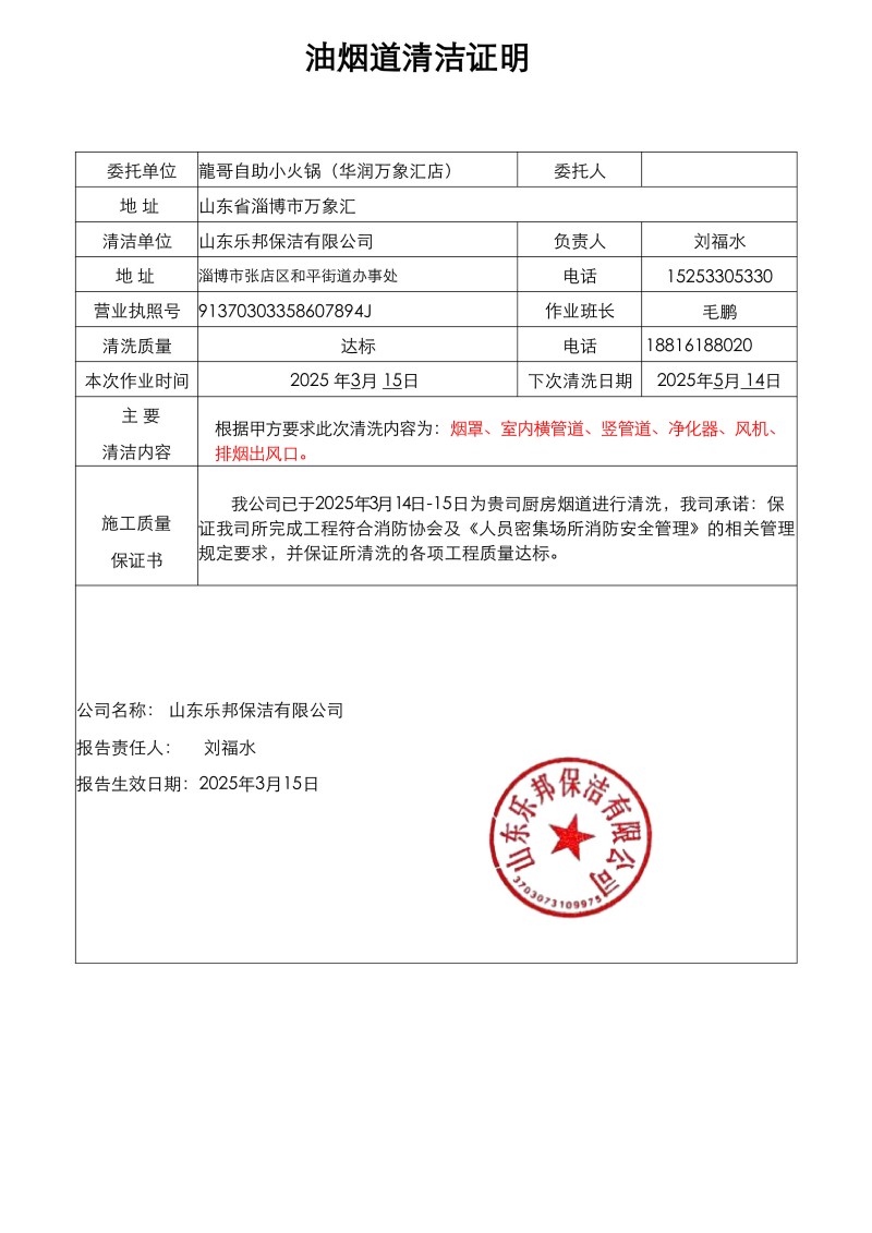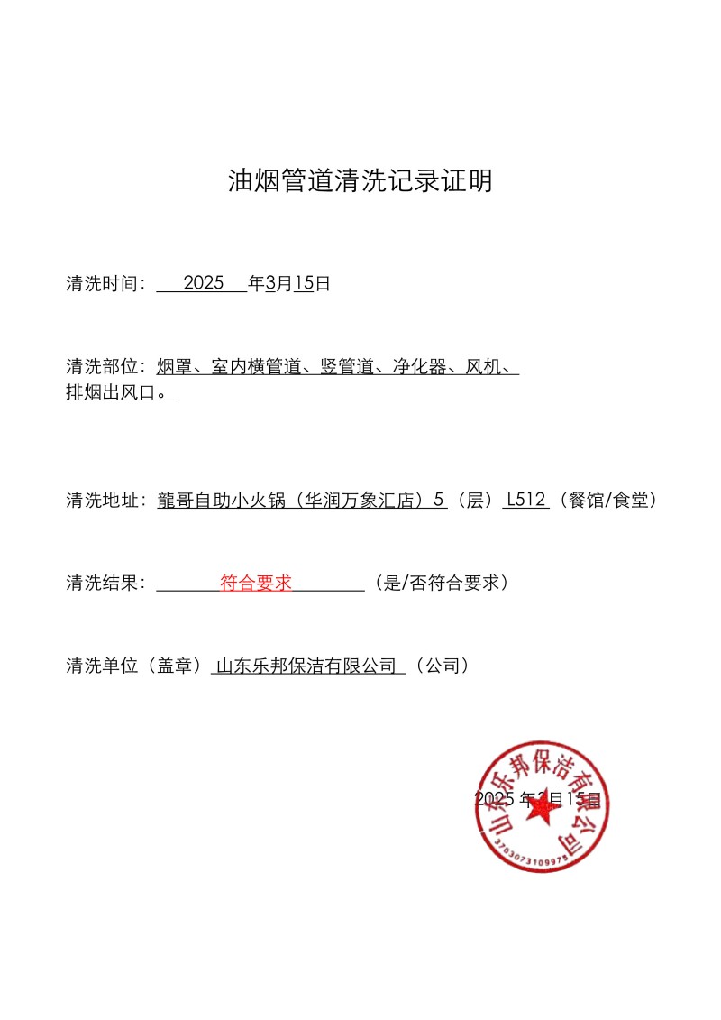 萬象匯龍哥自助小火鍋清洗報(bào)告25.3.15