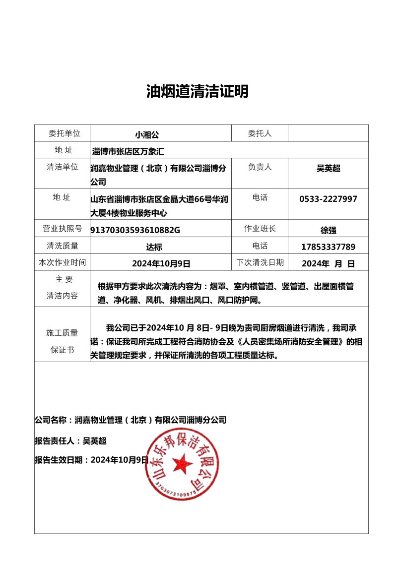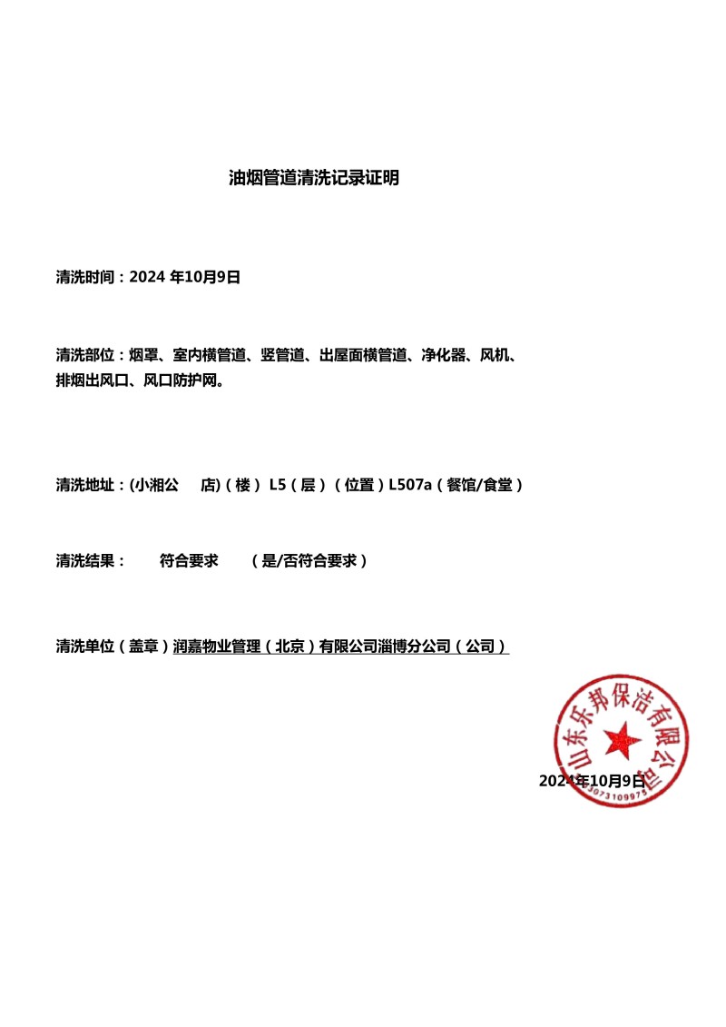 威海市景泰海鮮酒樓清洗報告25.5.5