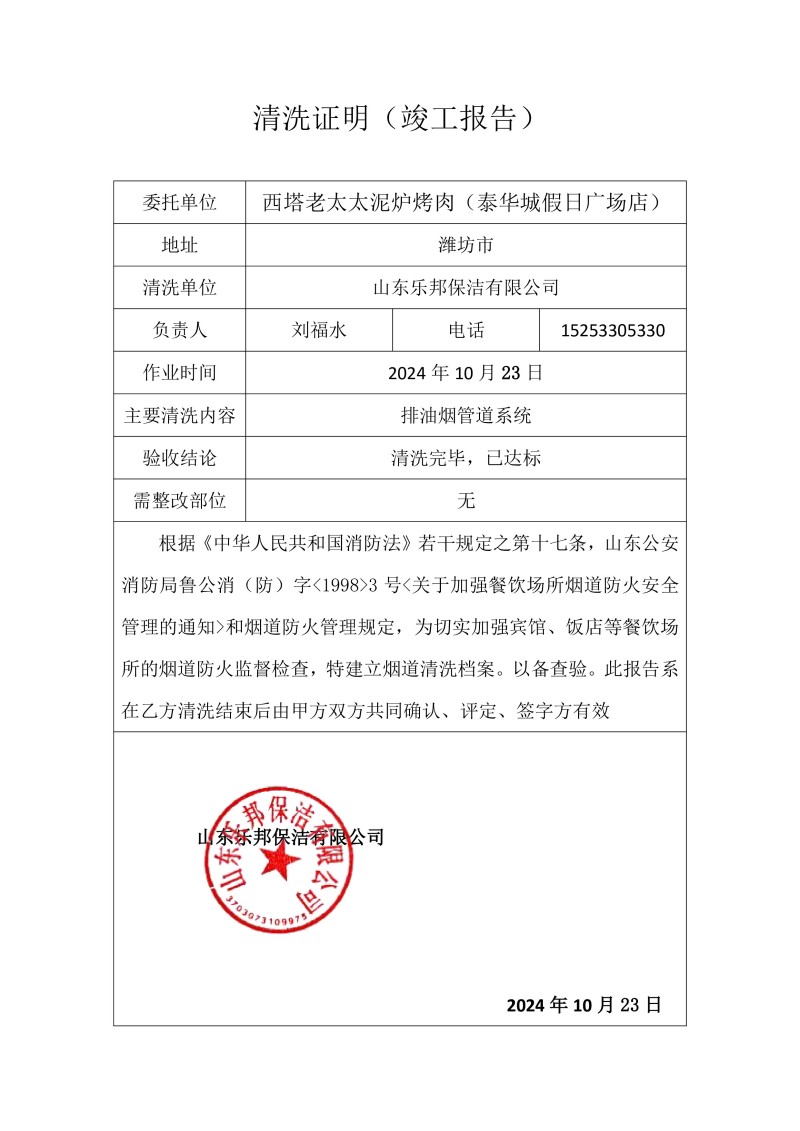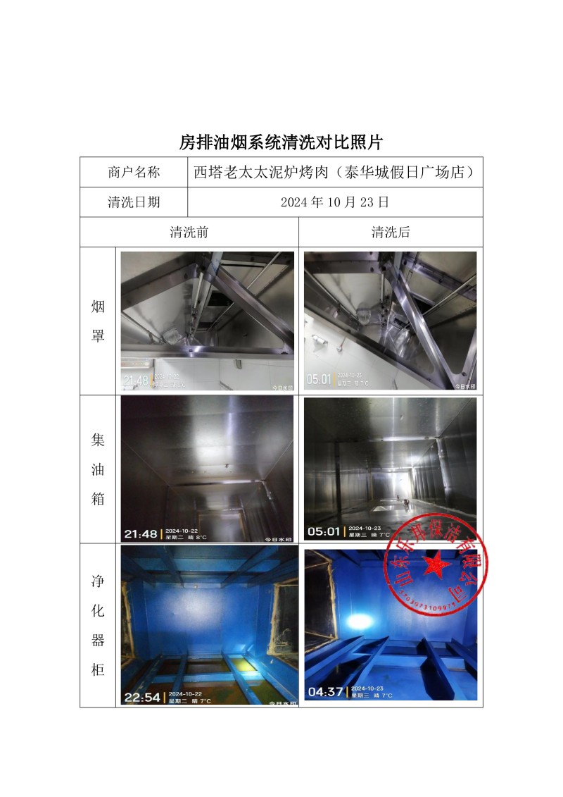 西塔老太太泥爐烤肉(泰華城假日廣場店)清洗報告24.10.23