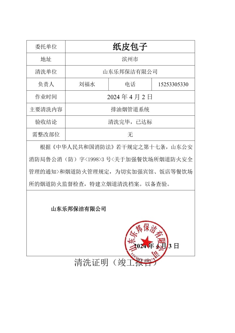 紙皮包子(鄒平店)清洗報(bào)告24.4.2