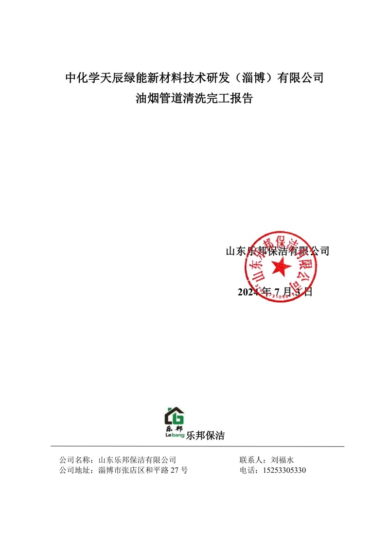 中化學天辰綠能新材料技術(shù)研發(fā)(淄博)有限公司清洗報告24.7.3