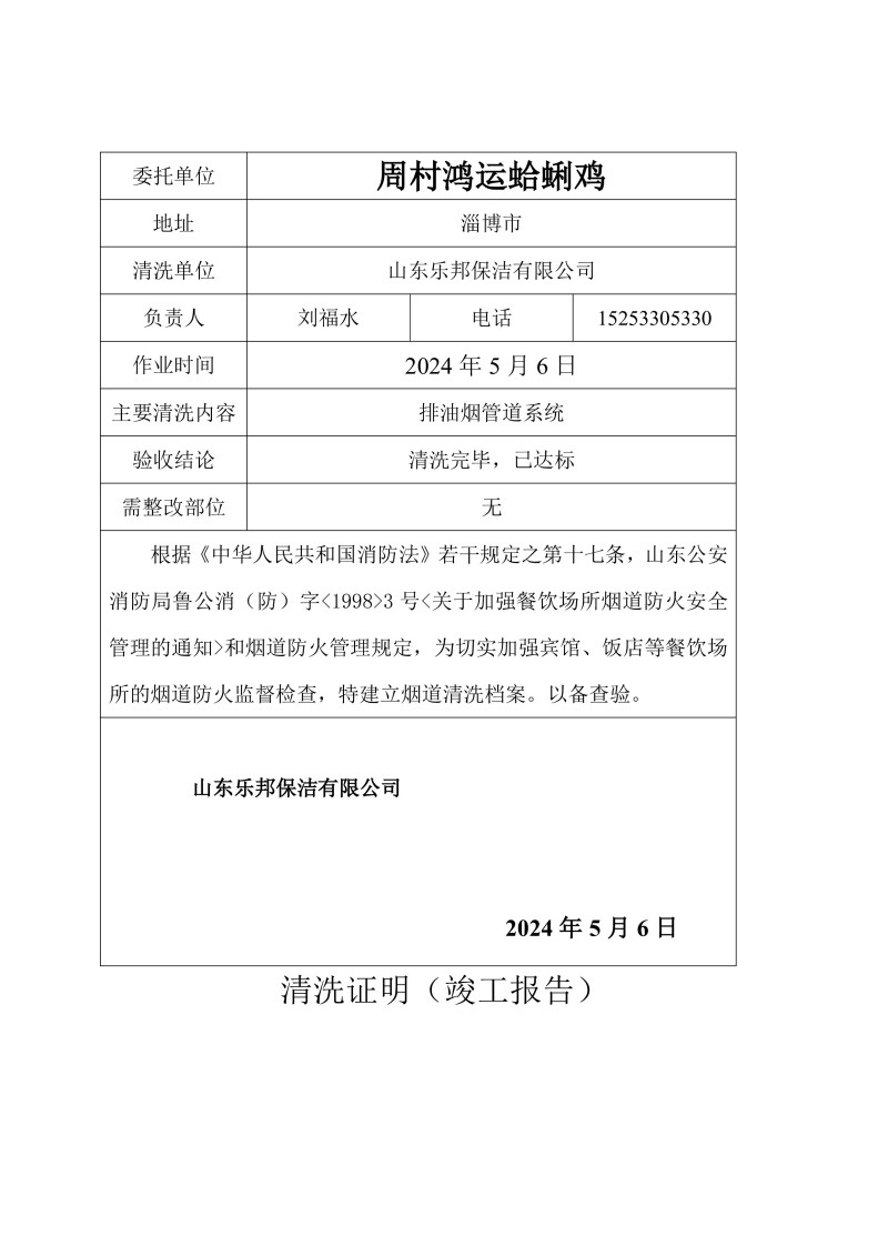 周村鴻運(yùn)蛤蜊雞清洗報告24.5.6